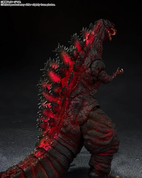 Shin Godzilla joins in S.H.MonsterArts in a new FOURTH NIGHT COMBAT VERSION featuring translucent molding! Paint applied over translucent parts gives the figure an intriguingly rich glow, re-creating its appearance from this stage of the film.