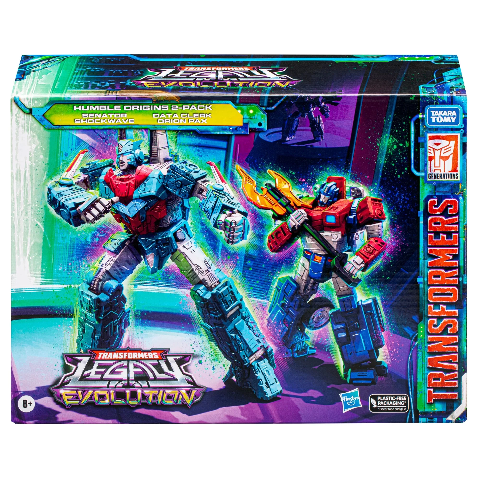 Experience the origin stories of legendary Cybertronians before the war with the Humble Origins 2-Pack! Before the Cybertronian War, Shockwave served as a representative of the Senate while Orion Pax worked as a data clerk in the archives of Cybertron. The Humble Origins 2-Pack comes with a Senator Shockwave action figure and a Data Clerk Orion Pax action figure. Both Transformers action figures convert from robot to Cybertronian vehicle mode and come with Energon Axe and blaster accessories. This 2-Pack of Transformers toys features exclusive packaging artwork! Collect all pre-Cybertronian war action figures for boys and girls to piece together the full scene.