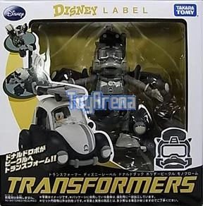For the upcoming Disney Label TF figure, Donald Duck is here! His alternative mode is a Volvo Bug, much like Bumblebee. This is the monochrome version.